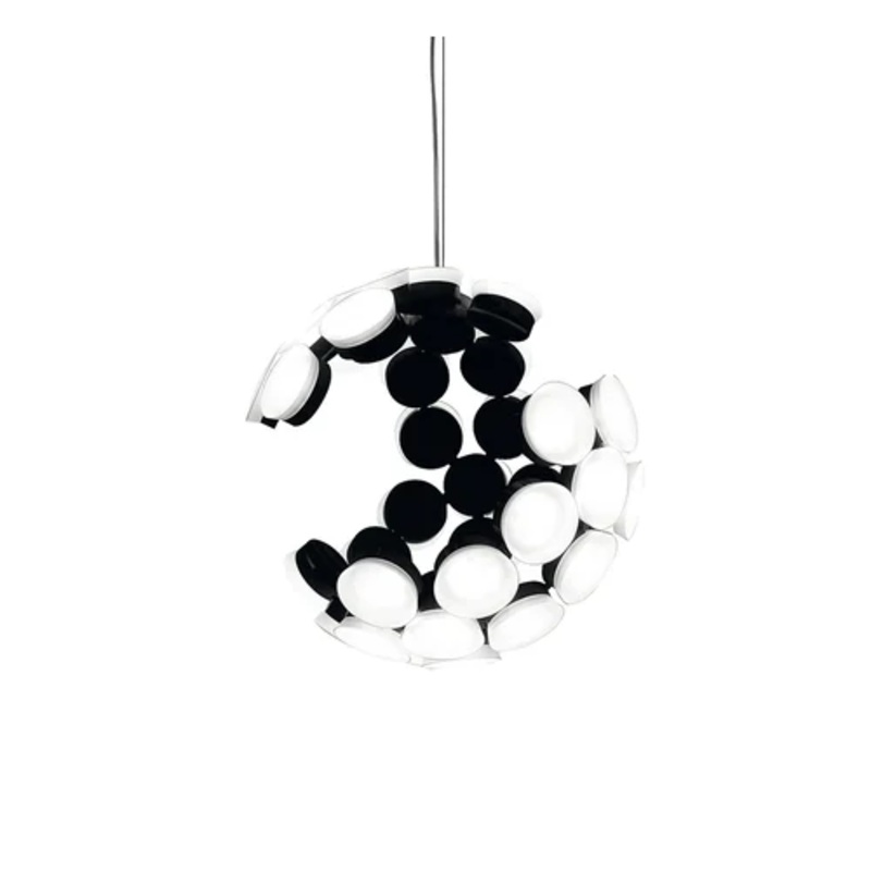 Scopas Suspension LampScopas of Artemide is a LED suspension lamp, a partial sphere, designed by Neil Poulton.An unfinished look characterizes this lamp, which originates from the repetition of an elementary module. Scopas has a face ever-changing, dependi
