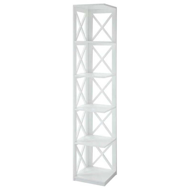 Add both function and style to an otherwise unused corner with the Scranton & Co 5 Tier Corner Bookcase. Featuring an open space that provides five spacious shelves for decoration, collections, art and books. Available in two finishes, and with an elegant crossed “x” design, this piece can transform any space into something truly beautiful. Surely will provide years of enjoyment. Tools are provided for easy assembly.