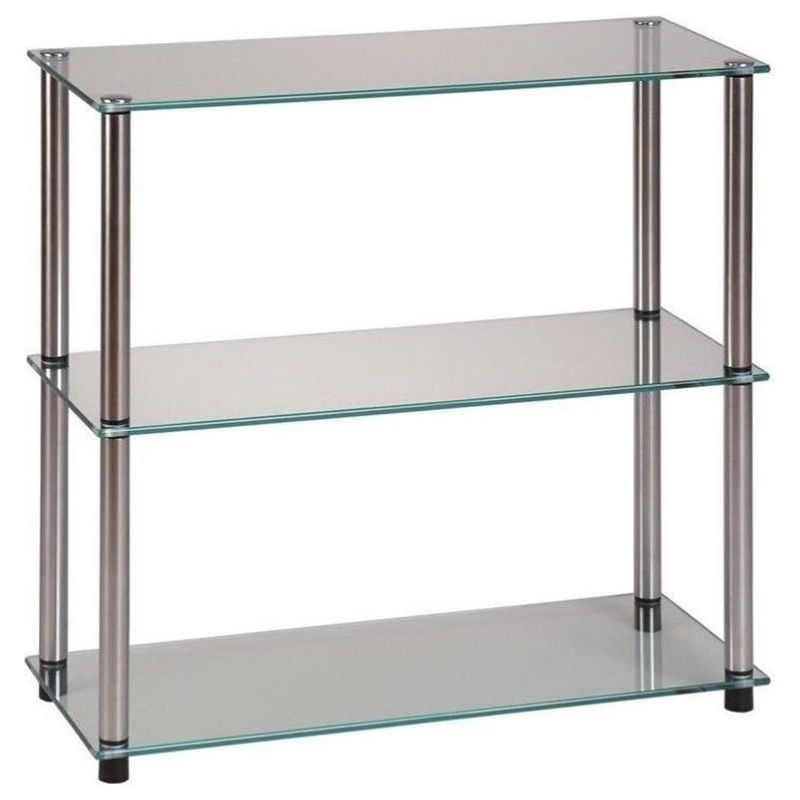 Features: -Three shelves -Perfect for your living room, bed room or bath room -No tools required. Sets up in minutes -6 mm tempered glass shelves and 22 mm stainless steel clad poles -Stainless steel poles won't rust Specifications: -Overall Product Dimens