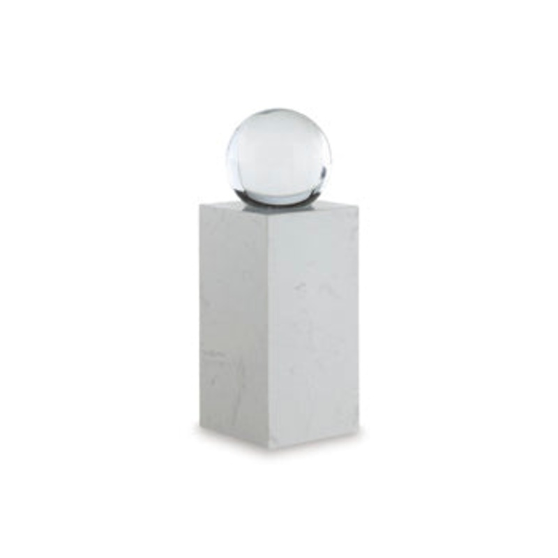 This exquisite sculpture effortlessly combines the purity of clear crystal with the timeless elegance of white marble. Contrasting textures and materials create a captivating visual experience, making it a striking focal point in contemporary settings. It'