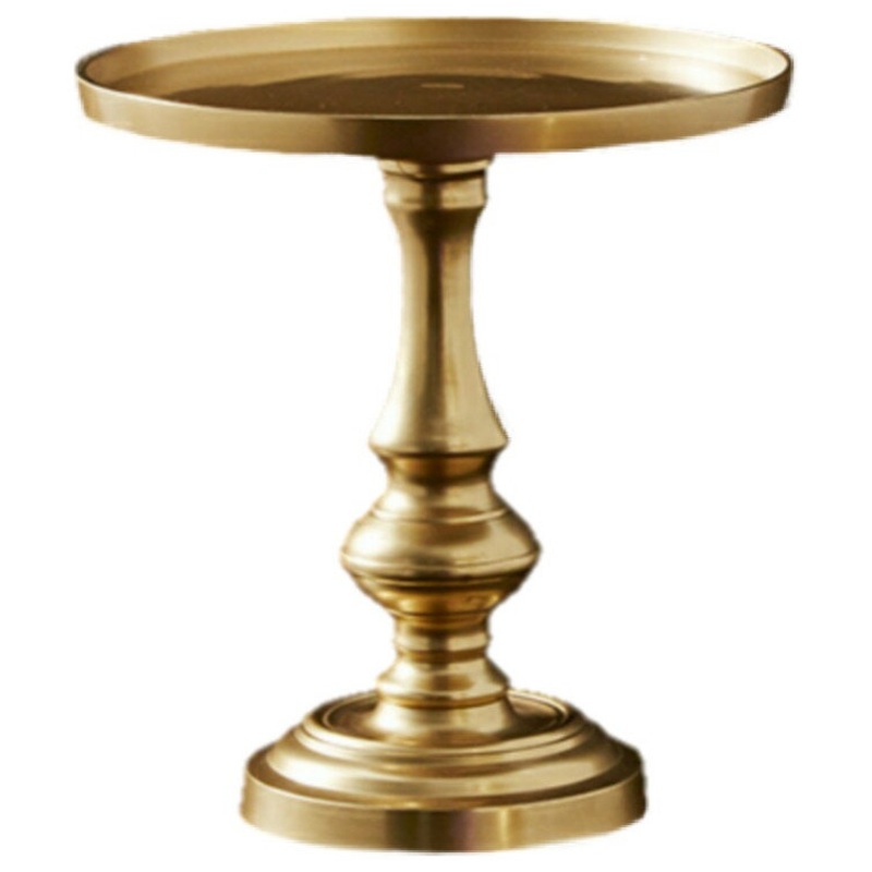 This golden pedestal pillar plate works beautifully as a candle plate holder. It is made of aluminum with a rich gold finish. A few pillar candles accented with some blooms is a simple and easy way to create a table centerpiece, when they sit on this gold