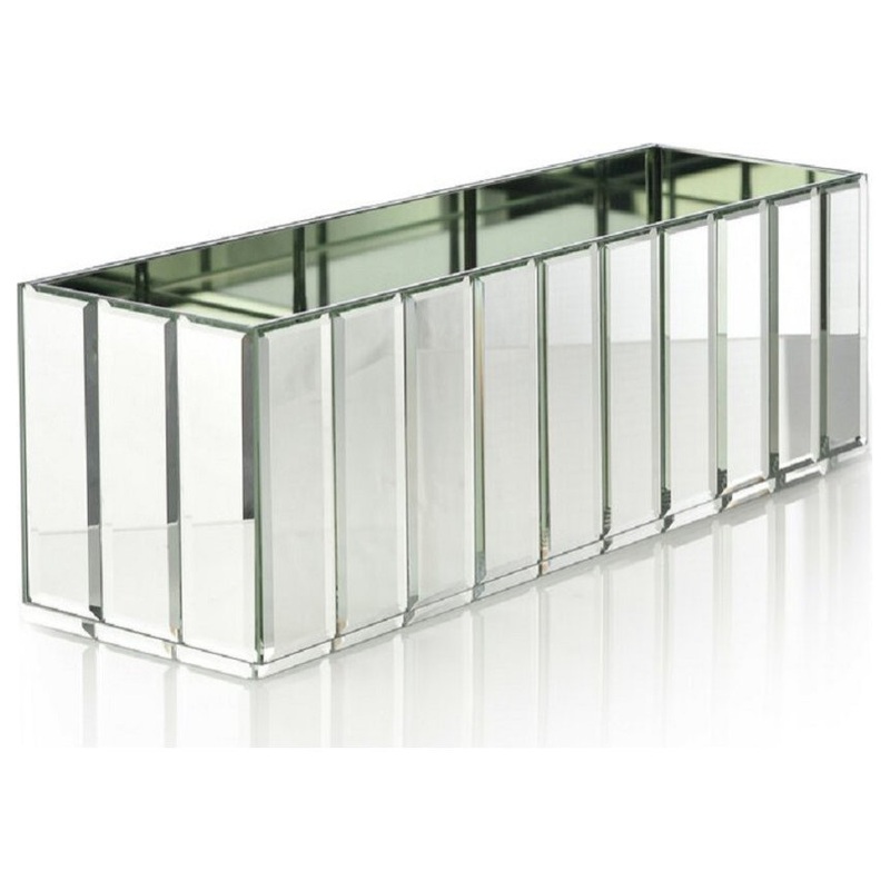 Bring a touch of Gatsby-inspired glam to your home without spending hours searching for just the right piece at a flea market! This oblong mirror vase has a bevel edged mirror strips on the exterior and a beautiful, luxe look that is sure to compliment any style decor. Fill this mirror vase with beautiful fresh or artificial flowers, use it as a table centerpiece and much more. It’s 4 3/4″ tall, making a great centerpiece that allows guests to talk and look at one another without a tall item in the way! Vase measures 15 3/4″ L x 4 3/4″ W x 4 3/4″ H. It’s not just for the home or office, either. This Gatsby-inspired luxe vase can bring your event Pinterest board to life – use it as part of a wedding or event centerpiece, to hold treats in a candy bar and much more. Care instructions: Glass should be wiped carefully on the outside with a clean, soft, lint-free cloth. Use a liner if you plan to use with water or fresh flowers. Serene Spaces Living. All rights reserved.