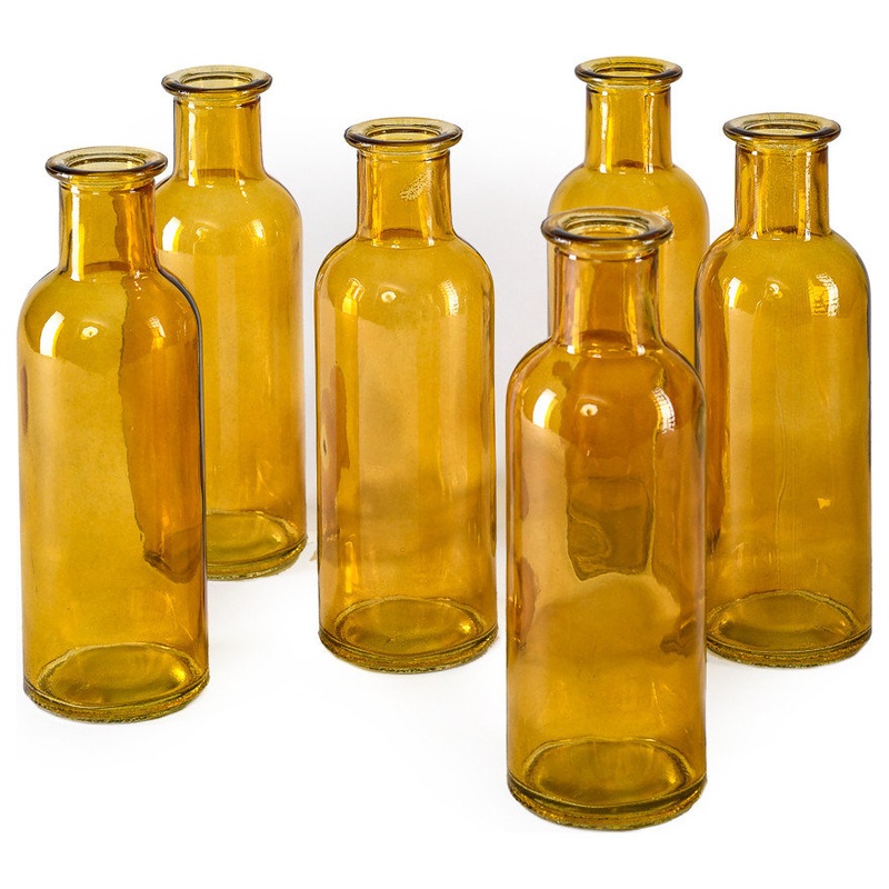 If you’re seeking a simple design element to add a feel of serenity to a space in your home, the Serene Spaces Living Medicine Bottle Bud Vases is a beautiful choice. This bottle featuring amber transparent glass, carry a vintage shape and design that resembles tiny medicine bottles from many years ago. Just add a simple stemmed artificial flower to a few of the glass vases for a simple, elegant design. Mix up the colors, and add different flowers to each, to create a unique grouping for a table centerpiece. These bottles measures 2″ Diameter x 6.25″ Tall and are sold as set of 6. When seeking products made with love that give your home or office a touch of warmth in a simple package, Serene Spaces Living is the perfect choice. Cleaning instructions: Product is for decor purposes only. Wipe clean with a damp cloth, do not scrub or put in dishwasher.