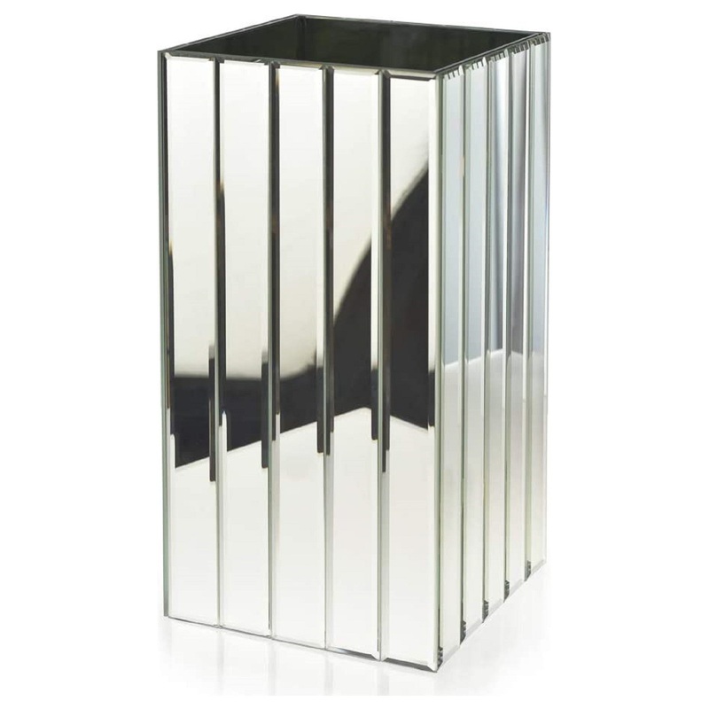 These Great Gatsby inspired luxe glass vases have bevel edged mirror strips on the exterior and a luxe, heavy weight. Each inside is lined with a single mirror panel. Try displaying in pairs with draped orchids or other fresh flowers. Sold individually. Tall mirror strip vase measures: 6.25in SQ x 12.5in H. You can count on quality, design and manufacturing when you order from Serene Spaces Living products, where we make everything with love.