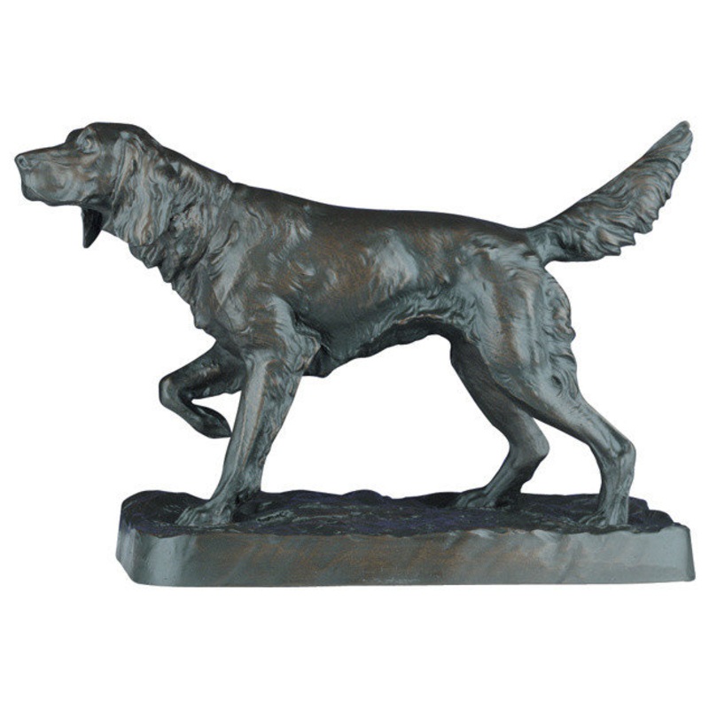 This lovely Setter Dog is a traditional style bronze the classic of all classics, English setter dog in all his prowess. It measures 16 inches wide, 6 inches deep, and 10.5 inches high, and is made of resin. This gorgeous piece is perfect for a home with a