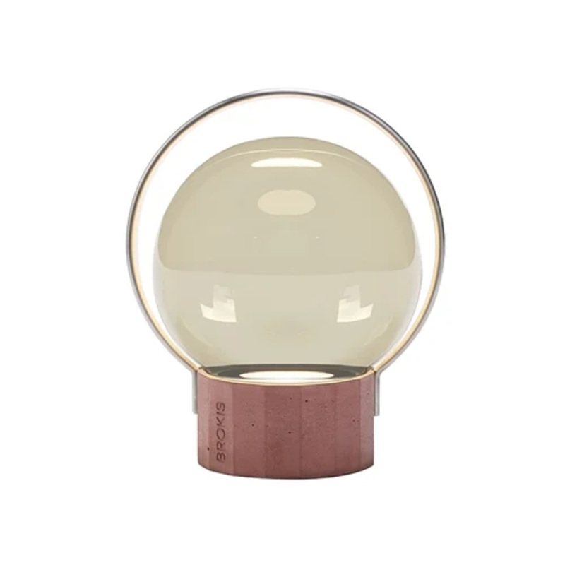 Sfera Portable is a new rechargeable outdoor light that comes in two sizes. It is one of the latest additions to the Brokis outdoor lighting portfolio. Sfera Portable is based on the idea of a small spheres of light set within a poured concrete base with the same subtle multiangular detail used throughout the Sfera family. The delicate sphere of handblown matte or gloss glass resides beneath a stainless-steel hoop, which serves as a handle for moving the light from one place to another. The concrete base houses not only the charging module but also a sensitive touch dimmer with which to adjust the brightness. Sfera Portable is fitted with an LED light source with diffusor and meets the safety and technological standards of the IP44 rating for outdoor use. The sphere as a timeless and perfect shape whose allure never ceases to capture the imagination. Handblown glass anchored in a raw, almost brutalist concrete base is an excellent match for modern architecture, but it can also be used to great effect when set in contrast with historical architecture. Sfera Portable is a stylish atmospheric lighting object designed for both outdoor and indoor use. Thanks to its simple construction, the light can be easily picked up and moved to change the ambience of any space.