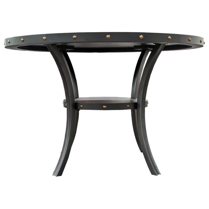 Sie 48 Inch Dining Table, Round Nailhead Trim Top with Shelf, Black Wood – Industrial – Dining Tables – by VirVentures