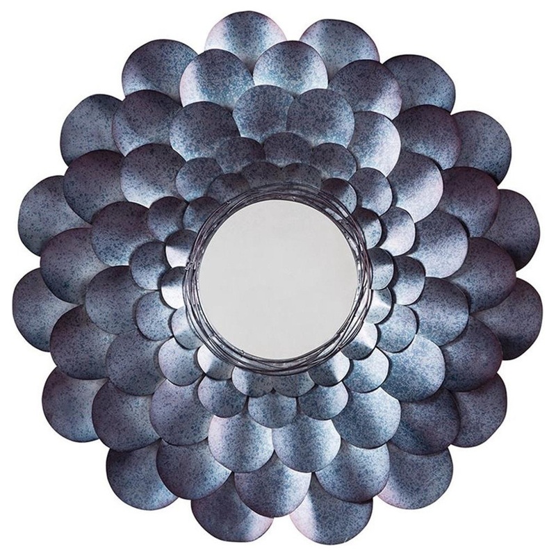 Petal to the metal. Wowing in a multifaceted blue thats completely unexpected, the Deunoro accent mirror stands out from the crowd in such a beautiful way. Exquisite flower frame with layers of luminous metal petals is the perfect pick for bringing a touch