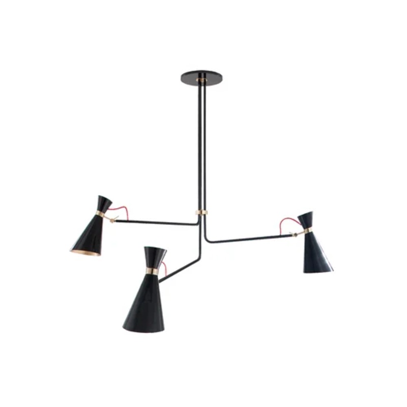Simone Chandelier With the arms opaque blacks, gold plated details, see the thread and an asymmetric structure, the chandelier Simon shows great attention to detail. Lamps: 3 x E27 bulbs DetailsSizes 110 cm. - H 80 cm.