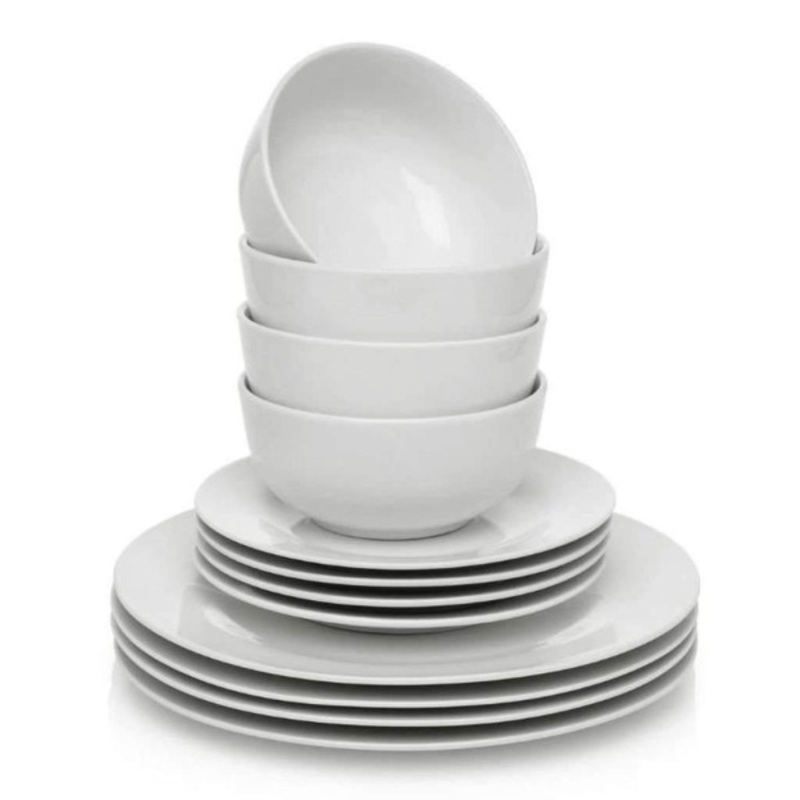 This versatile dinnerware set includes every piece you need for everyday dining and entertaining. A beautiful complement to any decor, this 12-piece set is great for daily use or special occasions. SPECIFICATIONS Material:PorcelainIncludes:4 dinner plates