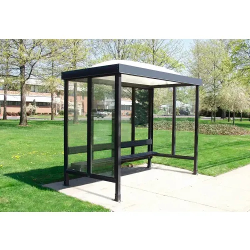 Smokers shelters provide a designated smoking area outdoors while protecting smokers from extreme weather conditions. These outdoor shelters can also be used as convenient bus stops providing an extruded aluminum bench and backrest along the rear wall to o