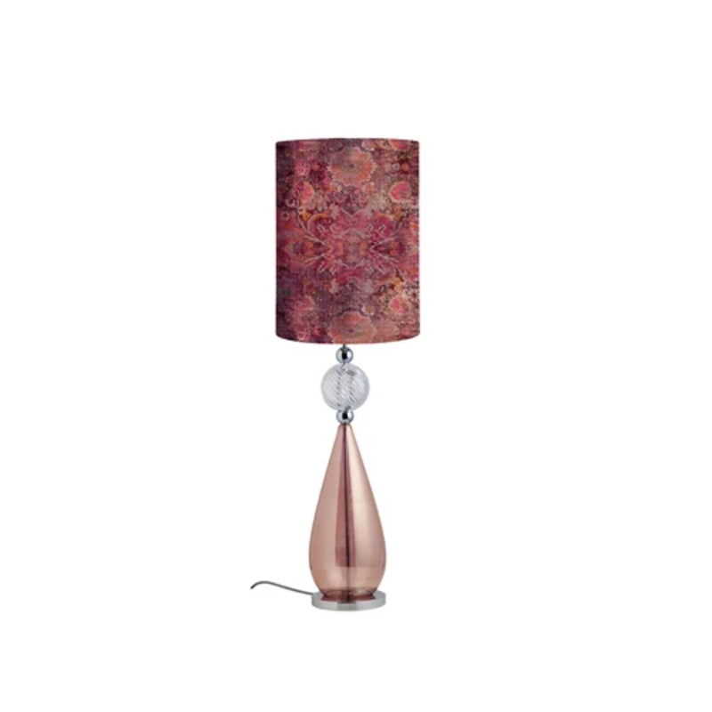 Smykke - Table/Floor Lamp - Base L Obsidian Crystal swirl ball with F Persia Magenta LampshadeSmykke is a table/floor lamp designed by Susanne Nielsen and produced by the brand Ebb&Flow. The Smykke table lamp, with its classic look typical of the 1950s, st