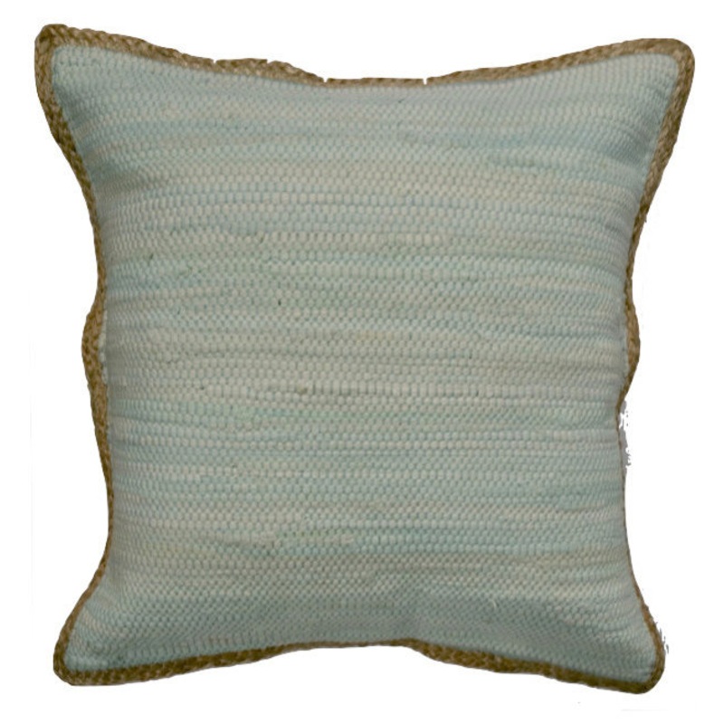 Solid Light Seafoam Jute Bordered Throw Pillow, 20″ x 20″ – Beach Style – Decorative Pillows – by LR Home