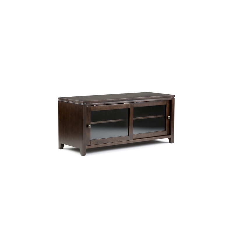 Cosmopolitan Solid Wood 48 inch Wide Contemporary TV Media Stand in Mahogany Brown For TVs up to 50 inchesYou need a great TV Stand for your brand new flat screen TV. One that will accentuate its beauty and allow you to view in comfort. The Cosmopolitan TV Stand is perfectly sized for TVs upto 50 inches. It has side cabinets with sliding doors and two adjustable shelves which allow plenty of storage and space for all your media and gaming devices. The unit features cord management cut-outs for easy installation of TV and media components.