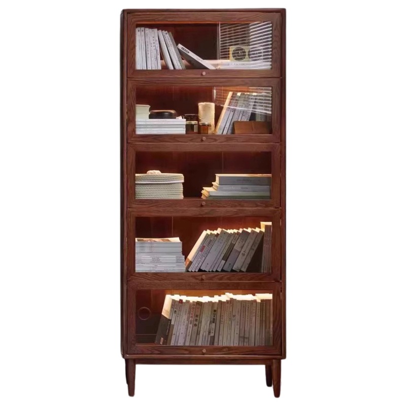 - Color: Walnut Color / Oak Glass Door Bookcase 29.5×12.6×70.9″