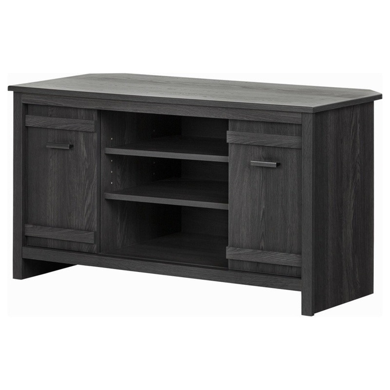 South Shore Exhibit Corner Tv Stand, For Tvs Up To 42”, Gray Oak – Transitional – Entertainment Centers And Tv Stands – by Bison Commerce