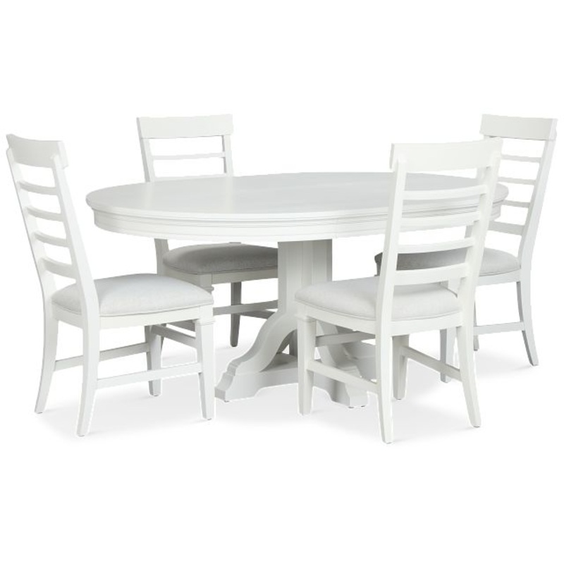 Model: 9724911Dimensions: 72.75w x 39.00h x 45.00lTable length without leaves: 63Seat cushion core material: foamLeg color: chrome whiteLeg material: chrome powder coated metalDesign details: tuftedBack cushion fill material: foamBase material: chrome powd