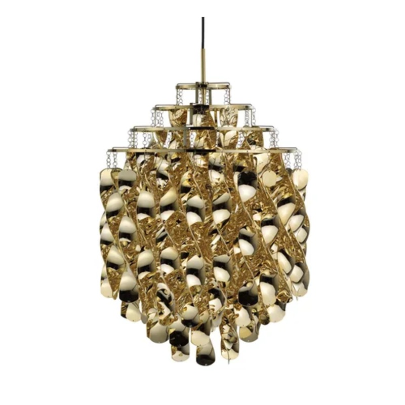 Spiral Mini Suspension LampSpiral is a collection of suspension lamps created by Verner Panton and produced by brand Verpan available in gold, multicolor or gold colour. Spiral is made of cellidor spirals on a four ring metal frame. Mounted with chrome cei