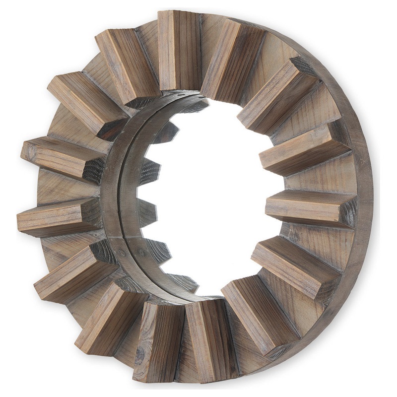 Crafted from pine wood and finished in a dark brown tone, the Sprocket Mirror I is a stunning round mirror with cog-like grooves on the frame. Spanning 17" in diameter, this stylish wall mirror looks gorgeous by itself or when grouped with others in the Sp