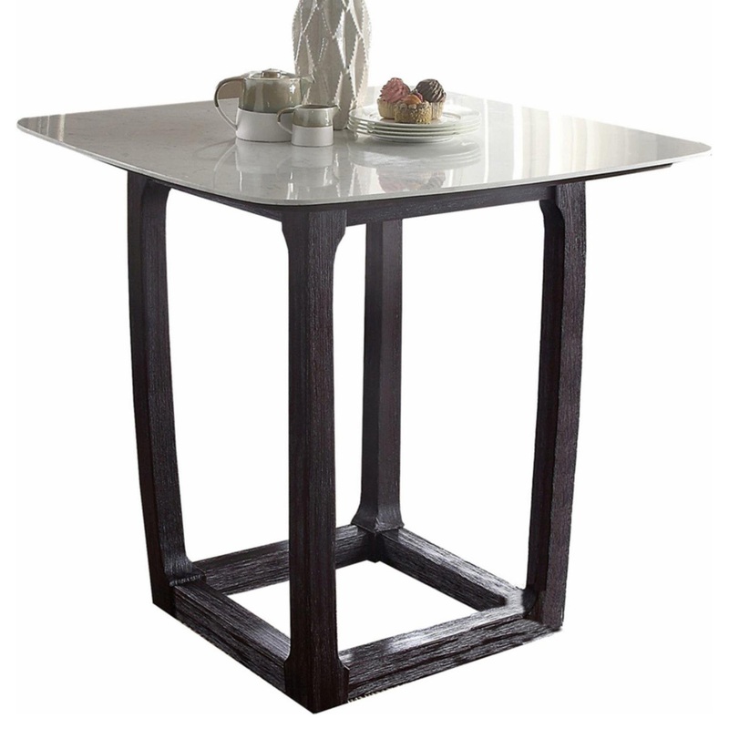 Square Counter Dining Table, Sled Wooden Base & Marble Top, Weathered Espresso – Transitional – Dining Tables – by Decor Love