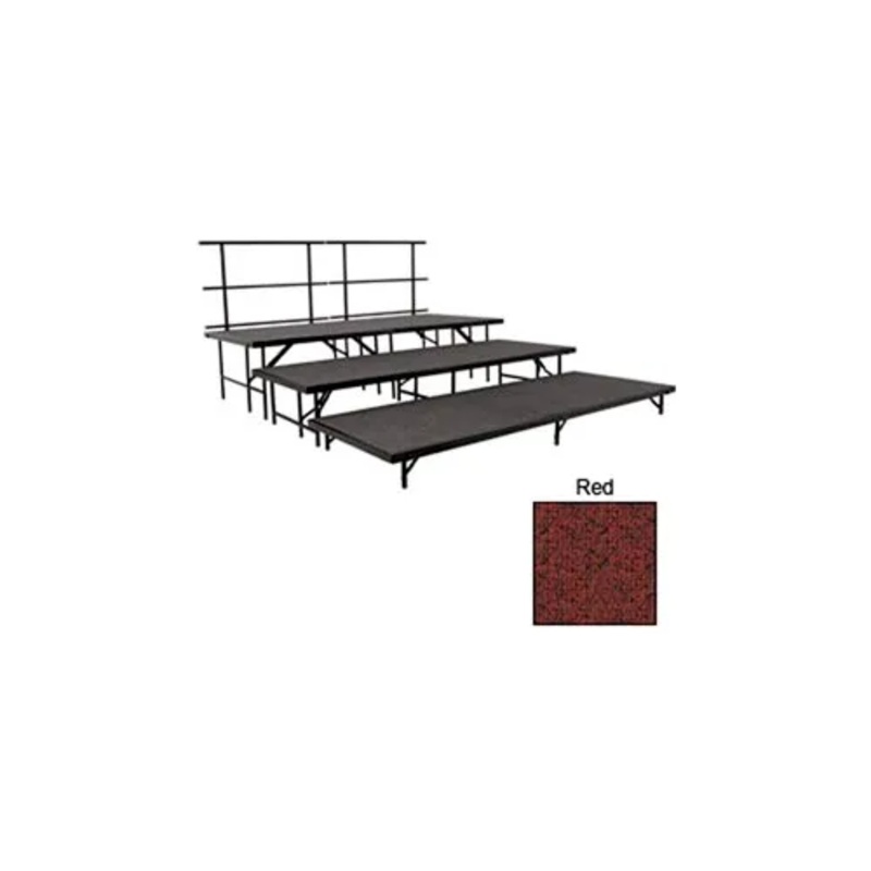Stage Set with Carpet – 96″L x 36″W – 8″H, 16″H, 24″H & Two Guard Rails – Red