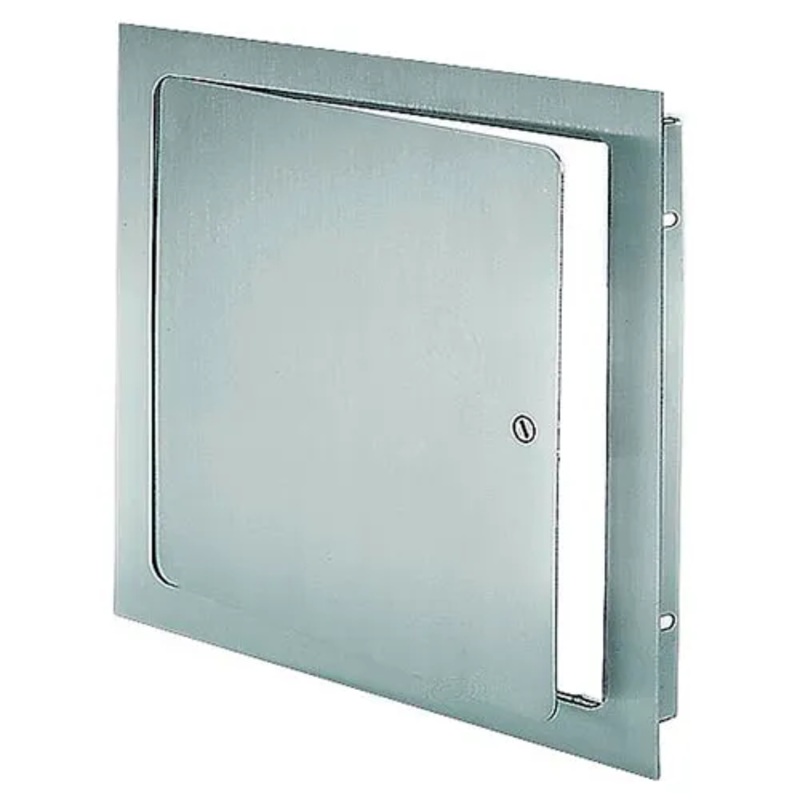 Universal flush access door (stainless steel) for walls & ceilings. Designed for installation in all types of flush surfaces. This unit is good for exterior applications or areas where corrosion or moisture is a concern. 5 Latches. Stainless Steel Finish.