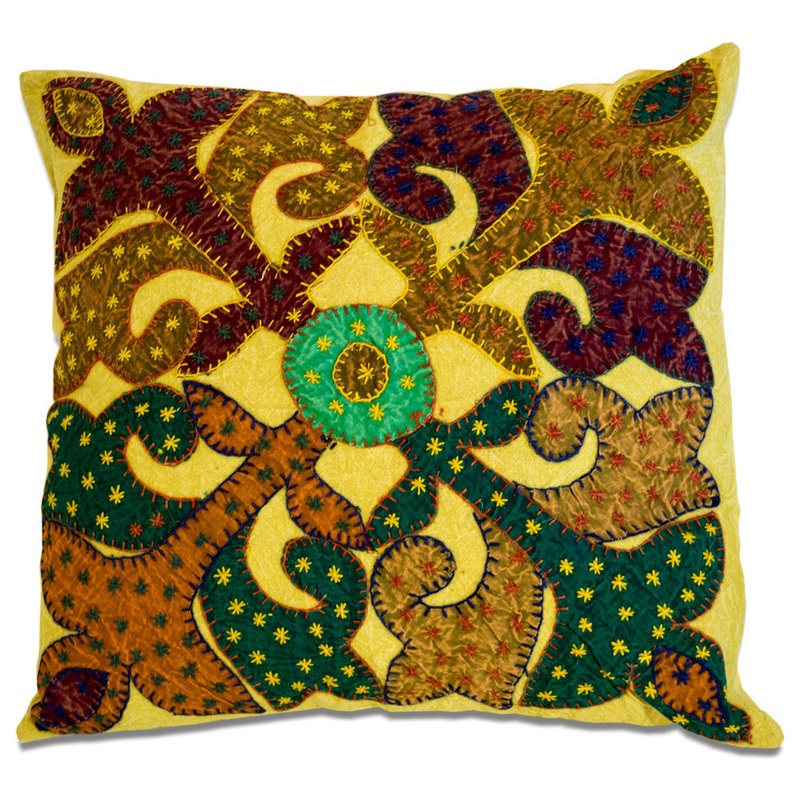 Add personality and a colorful pop to your living space with this gorgeous pillow. Its lovely gold color and multicolored star and flower patterns add an eye-catching touch to any room. It would be right at home alongside eclectic decor or even as a statement piece in a more understated space. Its cotton material makes it a soft and versatile piece. Place it in on a sofa, chair, or bed to add a little energy and cheer to your life.