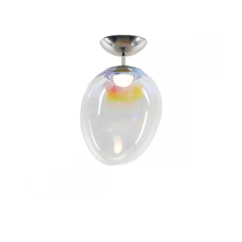 Stellar Nebula is an elegant family of lamps designed by BIG to interpret and enhance artisanal glassblowing with innovative finishing techniques. Values, roles and limits of industrial and artisanal production are at the centre of this design idea that aims to find a solution of industrial uniqueness. The glass created is then treated with an innovative dichroic finishing process. Artisanal knowledge and industrial innovation thus come together in the beauty of the material that enhances the magic of the interaction between glass and light.