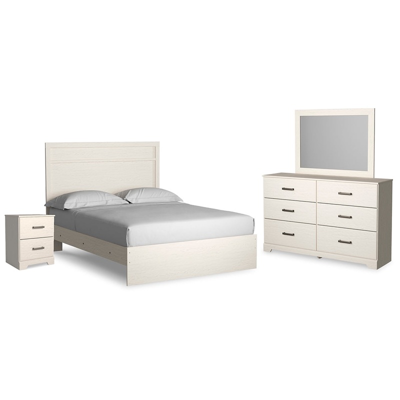Stelsie Queen Panel Bed with Mirrored Dresser and Nightstand