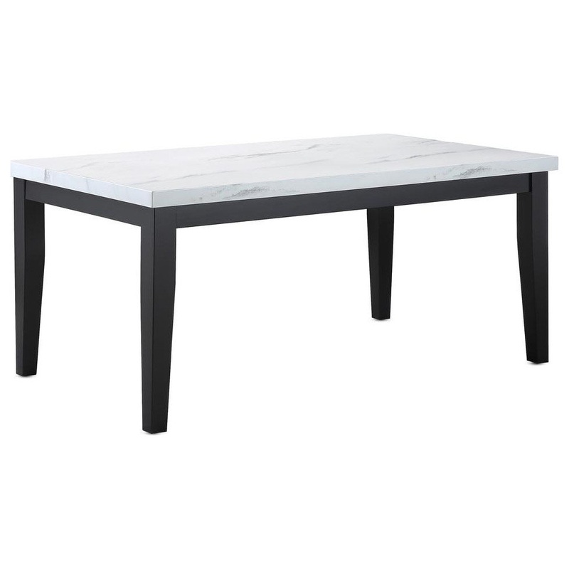 Elegant dining at a value can be yours with the Sterling Dining Table. The white faux-marble top contrasts beautifully with the rich cordovan cherry finish of the legs for dining at it’s finest. The spacious 66 top allows you to seat up to 6 comfortably. Pair with the coordinating tufted back, easy-care faux-leather chair (sold separately) to complete the look. Your purchase includes one dining table.