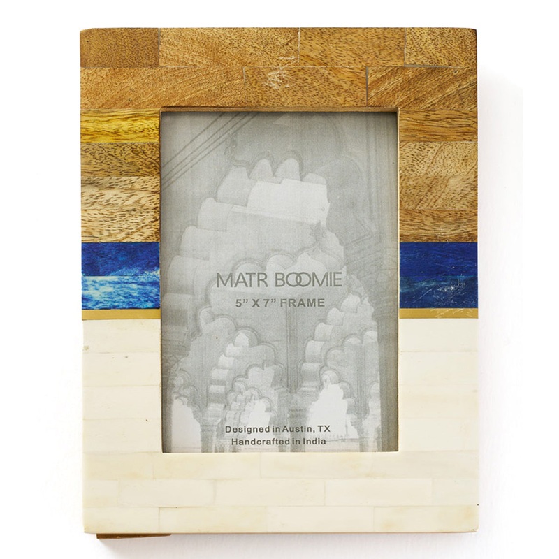 Immerse your cherished photos in the elegance of our Kaveri Collection, a testament to traditional Indian artistry fused with modern design. This exquisite photo frame is handcrafted by master artisans in Old Delhi, featuring sustainably harvested mango wood, ethically sourced bone, and intricate brass inlay.