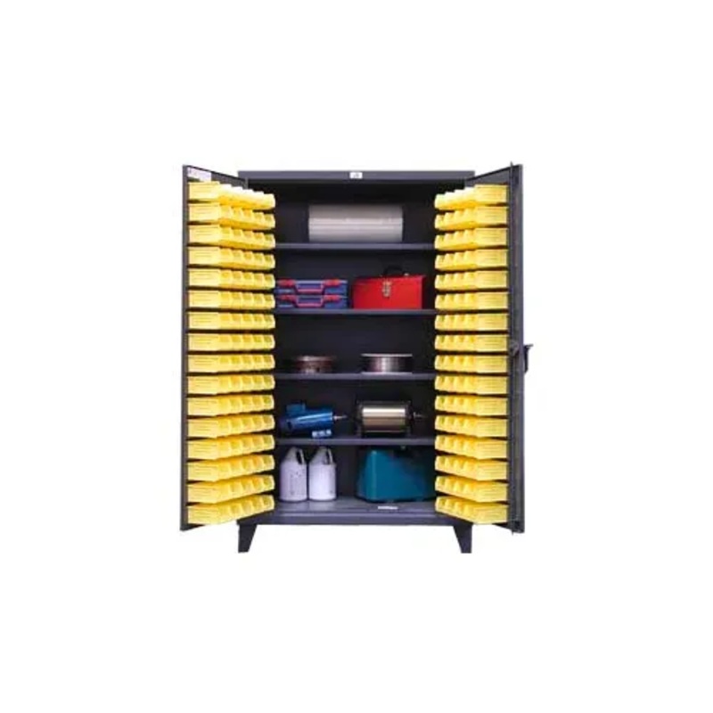 STRONG HOLD ALL WELDED 12 GAUGE HEAVY DUTY BIN CABINETSCabinet with 144 BinsAll welded heavy duty cabinets provide a tough design that withstands today's rough and rugged manufacturing environment. All welded bin cabinets help organize, store and secure sm