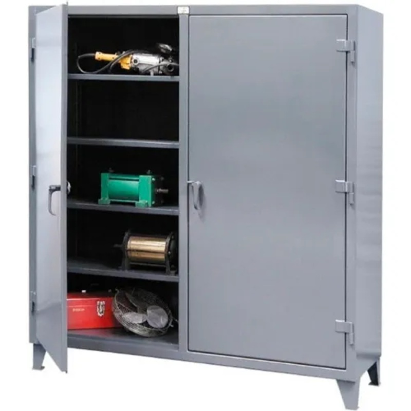 STRONG HOLD EXTRA HEAVY DUTY DOUBLE SHIFT STORAGE CABINET "Battleship" construction for lifetime durability Superior strength 12-gauge all-welded steel body construction provides maximum protection. Solid Front Cabinet has dual doors that swing open 180 an