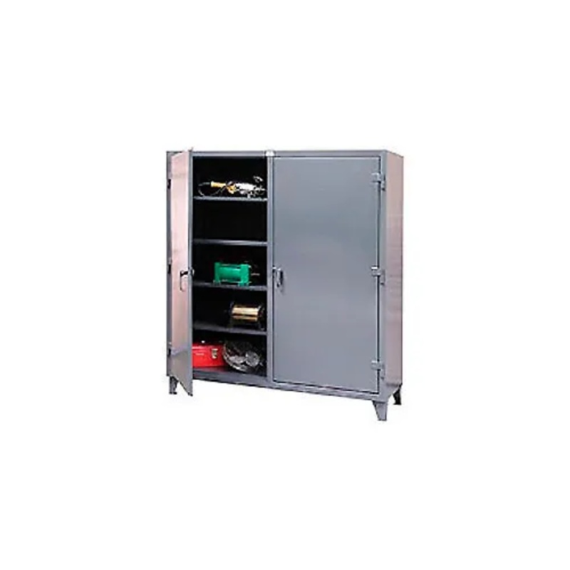 STRONG HOLD EXTRA HEAVY DUTY DOUBLE SHIFT STORAGE CABINET "Battleship" construction for lifetime durability Superior strength 12-gauge all-welded steel body construction provides maximum protection. Solid Front Cabinet has dual doors that swing open 180 an