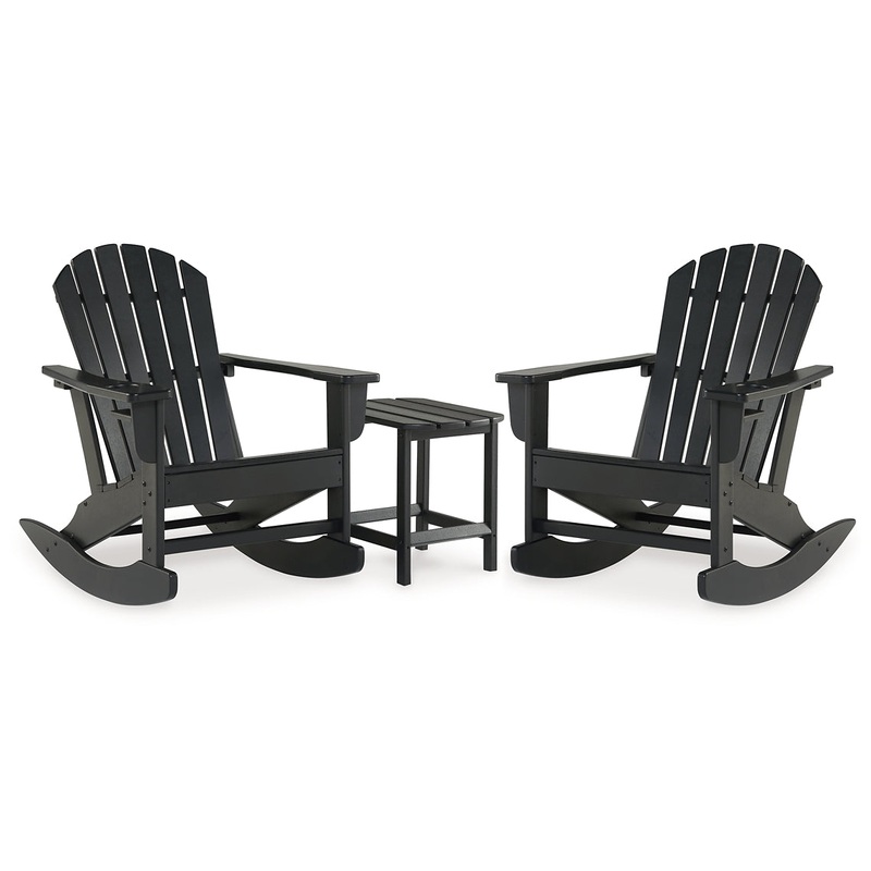 Add cottage-quaint charm to your outdoor oasis with this rocking chair and table set. Made of MEGA TUFF high-density polyethylene material, its sure to weather the seasons beautifully. Designed to shed rainwater, the slatted styling and classic Adirondack design provide exceptional form and function.