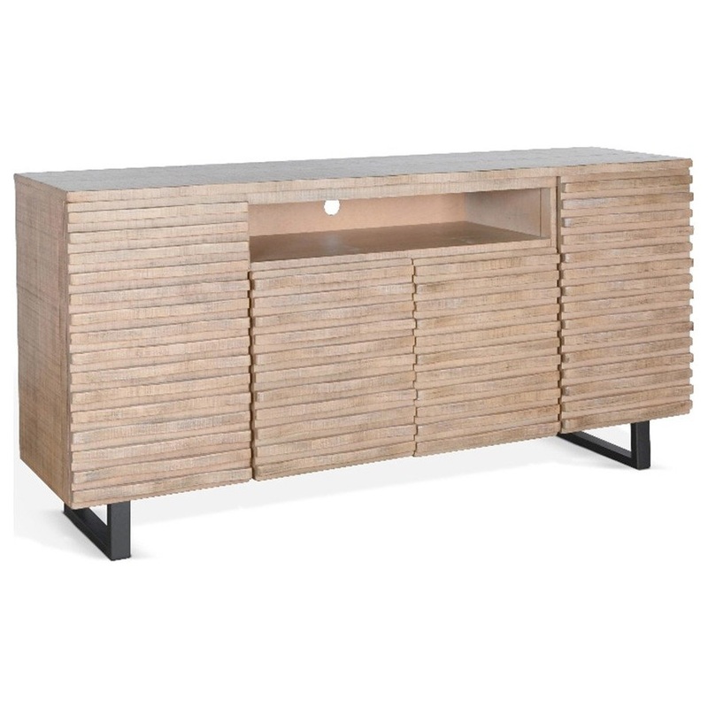 The boxy silhouette and two sled legs will give your living room a mid-century modern vibe. It has two side cabinets with adjustable shelves and two smaller cabinet doors to fit all your necessities. The open shelf is perfect for a sound bar with cord management.