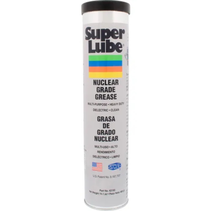 Super Lube-N, the nuclear grade of Super Lube multipurpose grease was developed specifically to meet the requirements of GE Nuclear Specification D50YP12 Rev.2 Super Lube-N is a fully rated NLGI-2 bearing grease and can be used to lubricate wire rope, chain, pulleys, bearings, and anything that slides, swivels, rolls or squeaks. 14.1 oz cartridge Super Lube Nuclear Grade Approved Grease