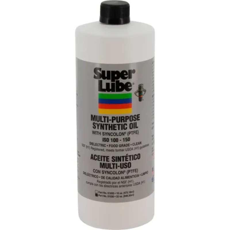 Super Lube Oil with PTFE is a premium, synthetic oil with suspended PTFE particles that bond to surfaces of moving parts providing protection against friction, wear, rust and corrosion. Ideally suited for industrial machinery and equipment, it is safe on metal, rubber, plastic, wood, leather, fabric and painted surfaces. Machinery lasts longer, downtime is reduced, and productivity is increased. 1 qt bottle Super Lube Oil with PTFE (High Viscosity)