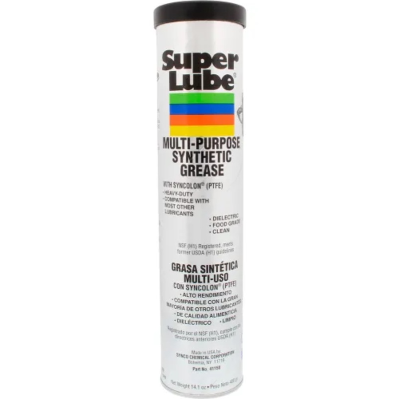 14.1 Cartridge Oz. Super Lube Synthetic Grease - 41150Super Lube Grease is a patented synthetic NLGI grade 2 heavy-duty, multipurpose lubricant with PTFE. Synthetic base fluids and the addition of PTFE micro powders combine to form a premium lubricant that