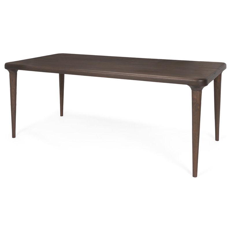 Suvan is a sleek dining table, crafted from solid mango wood, featuring a rich medium-dark brown stain that exudes elegance. Its smooth, matte finish enhances the dark hue while accentuating the table’s rounded edges. Supported by four tapered spindle legs, Suvan boasts an open and airy profile, perfect for creating a welcoming dining atmosphere. With its minimalist design, Suvan encourages a comfortable dining experience. Available in two sizes and two finishes.