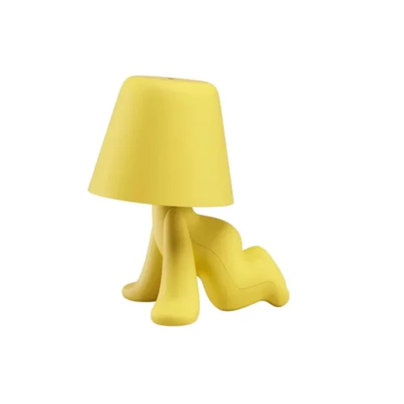 Qeeboo’s Golden Sweet Brothers are table lamps that combine elegance, functionality and a touch of sweetness. This collection of lamps brings a magical atmosphere to every corner of your home, creating a lively tablescape that characterizes the table and gives a special touch to any room. The Golden Brothers family is enriched with the Sweet Brothers SAM and its siblings, available in a variety of soft touch polycarbonate colors. The modern, eye-catching design of these lamps fits perfectly with any style of decor. Available in black, white, light blue, yellow and terracotta, the Sweet Brothers take different postures, adding a dynamic touch to your home. They can be easily placed on any flat surface thanks to their stable base, giving a bright and even light. Each Sweet Brother is equipped with an LED lamp with rechargeable battery, this makes them extremely practical and suitable for any situation. You can take them with you to every room in the house without the need to plug them into an electrical outlet. Just simply recharge the battery and enjoy the warm and enveloping light they give off. To make use even more convenient, Sweet Brothers come with a soft touch switch, which allows you to turn them on and off with a simple touch. No hassle of buttons or wires to manage, just a cozy light at your fingertips. These small lamps are the perfect choice for those who want to combine style, functionality and a soft touch in lighting their home. Choose the color that best represents you and be won over by their timeless elegance.