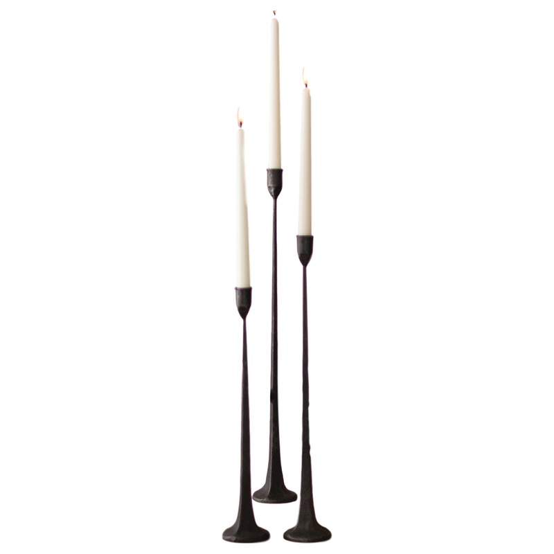 Tall Cast Iron 3-Piece Set Black Candlesticks Taper Candle Holder Elegant Slim – Contemporary – Candleholders – by My Swanky Home