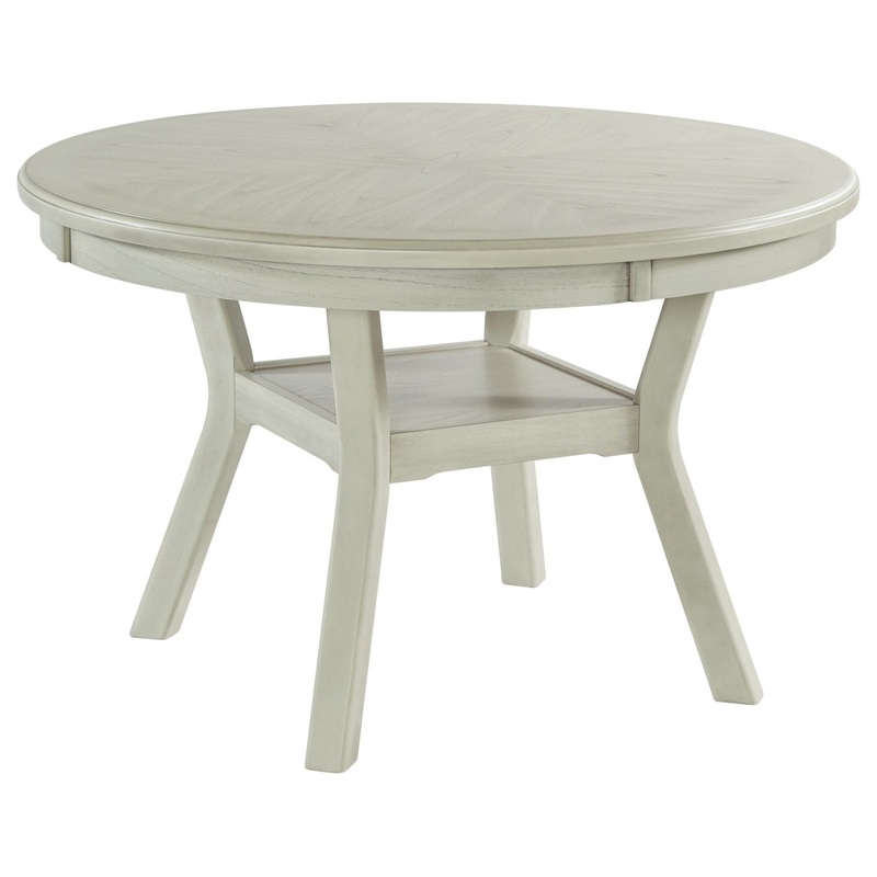 The Picket House Furnishings Taylor Standard Height Dining Table will look fantastic in your dining room! This table is ideal for small space living. The round table top lets you move around with ease, while the extra shelf in the base lets you store away anything you might need during your meal. The bisque finish is striking and will look great with any decor you might have. The kicked out legs definitely add extra style to this already stunning piece. The transitional design of this piece will easily become a staple in your home year after year.
