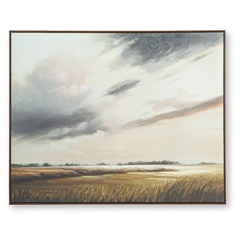 Sure to make an impression in casually chic spaces, this wall art invites you to admire the expansive beauty of nature. Its landscape design transports you to a field of rolling grain with the sky stretching out above. Hand-painted embellishments provide the finishing touch.