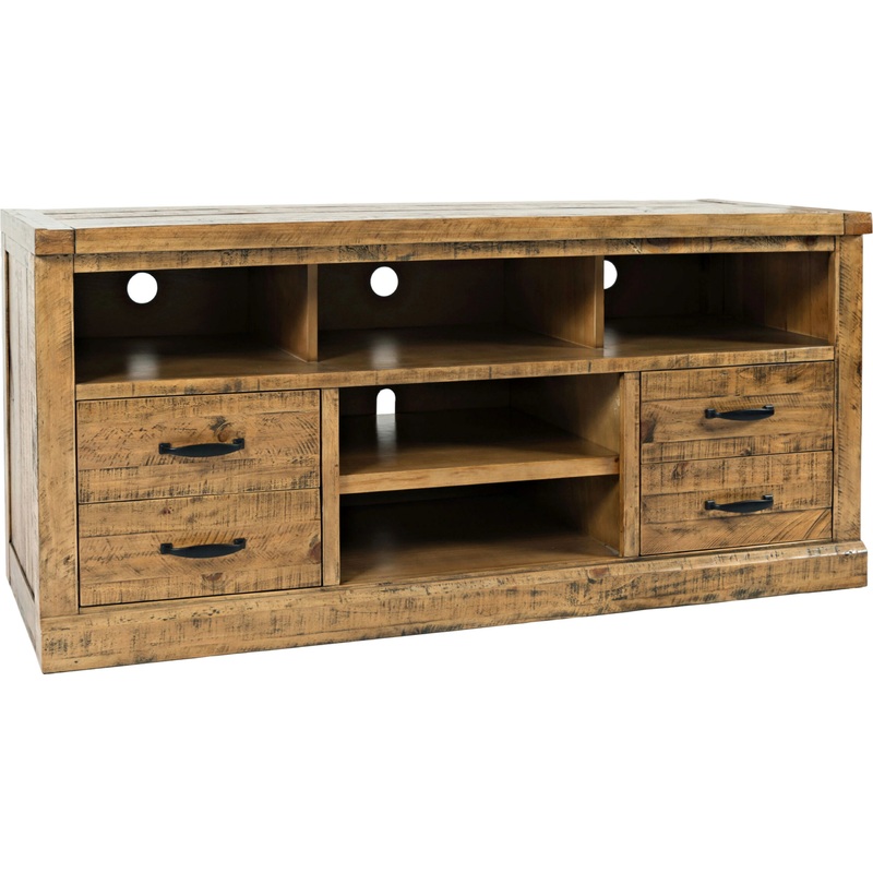 The Telluride Collection is the essence of rustic country style with distressed solid pine handcrafted into spectacular furniture perfect for any room in your home. Each piece is unique with subtle distressing that brings out the beauty of the natural wood. This fully assembled TV console will add a wonderful modern countryside touch to one of the most popular rooms in the home. Constructed from solid pine, the neutral finish of this piece brings out the beautiful uniqueness of the wood grain.