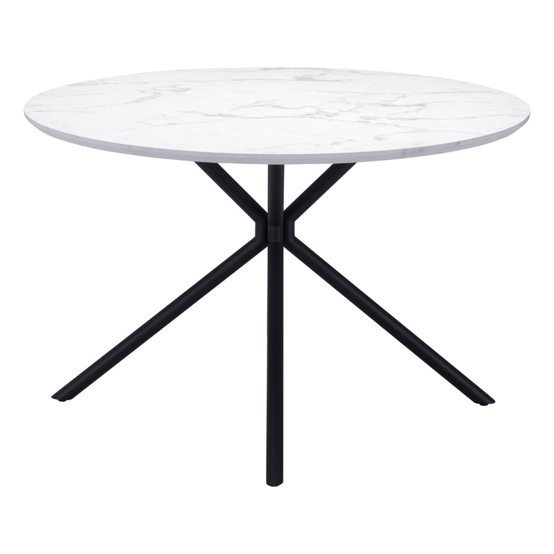 A classic round table, the Amiens Table fits any mid century modern space, perfect for any space, dining, work, or open plan. The top is a durable MDF laminate top with a marble print and steel legs powder coated in black.