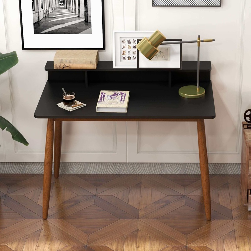 Product Name: Hayley Rectangular Solid Wood Desk In BlackProduct Overview:Enhance your home with the Hayley Rectangular Solid Wood Desk In Black, where elegance meets durability. Introducing our stunning solid wood walnut color black top desk, a perfect ad