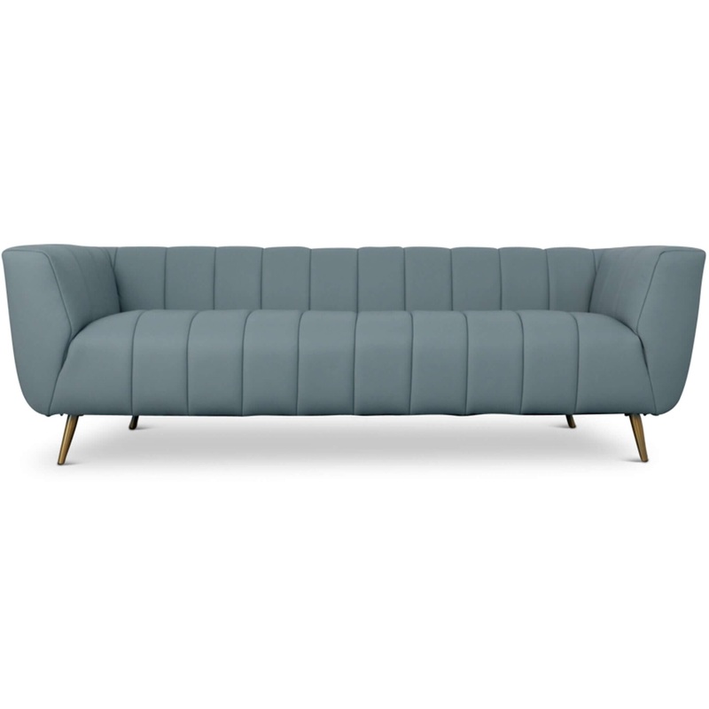 Product Name: LaMattina Genuine Italian Blue Leather Channel Tufted Sofa
