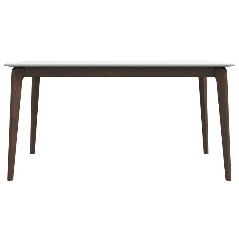 Introducing the Lindsey Solid Wood White Top Dining Table, a stunning blend of elegance and practicality. This mid-century modern dining table features a sleek white top and sturdy walnut legs, adding sophistication to any dining area.