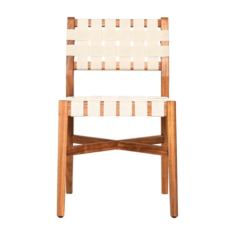 Product Name: The Tripicana Dining Chair BeigeProduct Overview:Introducing the Tripicana Lounge Chair, a perfect harmony of outdoor comfort and contemporary design. Crafted with a solid acacia wood frame and a weather-resistant weave for the seat and back,